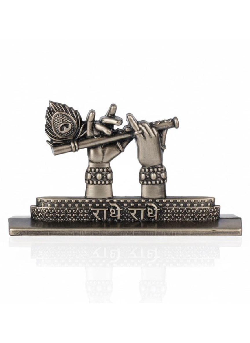 A beautiful and elegant idol of Lord Krishna’s hands playing the flute with “Radhe Radhe” inscribed on it. This showpiece will enhance the charm of your home, temple, or office desk. Made of high-quality metal, it features fine detailing and an antique finish.